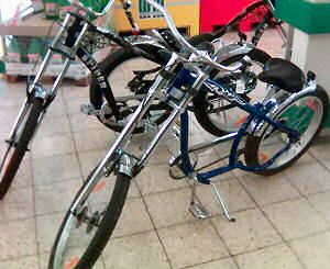 unterwegs ist. Aber gestern in der Bielefelder Innenstadt habe ich in echt ein junges, gar nicht mal unattraktives Mädchen ein ähnliches Ungetüm neben sich her schieben sehen. Ich befürchte, fahren wäre auch nicht möglich gewesen.