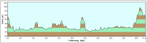 21 Km | 26 Km/h Schnitt | 39 Km/h max. | 80 Höhenmeter | 13°C