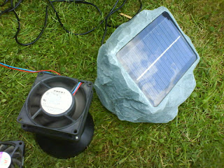 Danach haben wir noch ein bisschen Physikunterricht gemacht. Ich hatte im letzten Jahr beim Elektronikverramscher einen kleinen solarbetriebenen Sprudler gekauft. Der hat auch tatsächlich gesprudelt … so ca. 3 Wochen. Danach sagte der Motor keinen Zipp mehr und die Klotten lagen so rum. Wo die Sonne heute so schön schien, habe ich mal das Voltmeter aus dem Gerümpel gesucht und an die Solarzellen des Sets gehalten – siehe da, bei voller Einstrahlung liegen da fast 8 Volt an. Das sollte man doch nutzen können!
