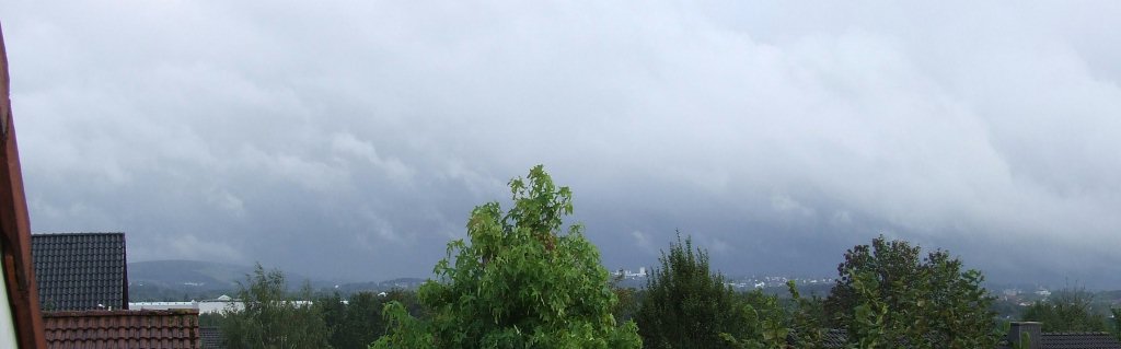 Hier bei uns schien die Sonne auf den Balkon und vom Wittel bis zur Ebenöde erstreckte sich eine finster dunkle Wolkenwand. Sah gewaltig aus … hat meine Kamera leider nicht so ganz einfangen können (oder ich nicht vernünftig einstellen).