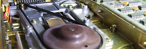 Soweit war ich schon mal, habe mich aber damals nicht getraut – oder wusste nicht wie – das Diskettenlaufwerk zu zerlegen. Wobei das gar nicht schwer ist. Mit 4 Schrauben das Laufwerk aus dem Gehäuse lösen, alle Stecker abziehen (und merken wo sie hingehören), die Platine unter dem Laufwerk lösen und leicht heben. Zack, liegt die Antriebsmechanik frei.