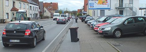 Jedesmal wenn die Mülltonnen raus gestellt werden, interessiert sich kein Mensch dafür, ob sie vielleicht andere behindern. Ganz ehrlich: auf dem Gehwegteil stören die Dinger nicht so sehr. Und es ist mir scheißegal, ob das ein bisschen mehr Arbeit macht, die Tonnen vernünftig wieder hinzustellen. Das wiegt die Verkehrsgefährdung nicht auf!