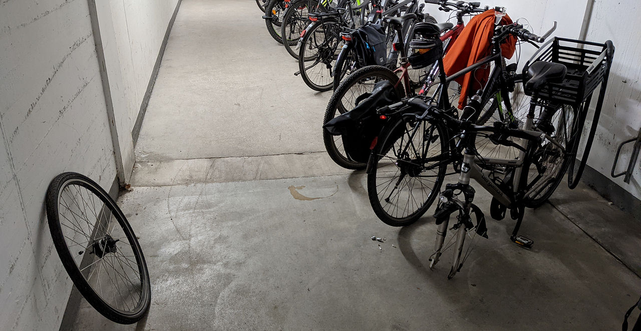 In der Tiefgarade des Arbeitgebers war neben dem Fahrzeug der Gattin noch ein Plätzchen frei und ich habe den Maulschlüssel aus der Satteltasche gezogen. Bremse abgeklappt, Nabendynamo abgeklemmt, Muttern gelöst, Rad raus, Decke runter, Schlauch raus, neuen Schlauch rein und alles umgekehrt wieder zusammen bauen. Dabei nicht an die Büroklamotten mit dem dreckigen Kram kommen. Nach 12 Minuten war das Fahrrad wieder fahrbereit und ich habe auch die „Stechuhr“ bedient ;-) Noch ein Vorteil vom Fahrrad. Mach das mal mit dem Auto …