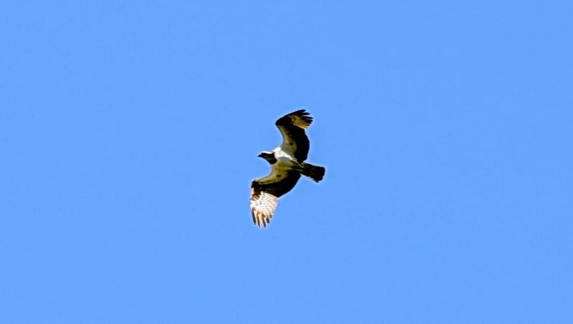 Die ganze Zeit kreiste ein großer Vogel über dem Teich und nach einiger Zeit hat er sich dann plötzlich nach unten gestürzt. Leider war ich nicht geistesgegenwärtig genug, um die Aufnahmetaste einfach gedrückt zu lassen und so einen Film aufzunehmen. Das wäre noch cooler gewesen. Aber auch so fand ich klasse, einen Fischadler bei der Jagd beobachtet zu haben.